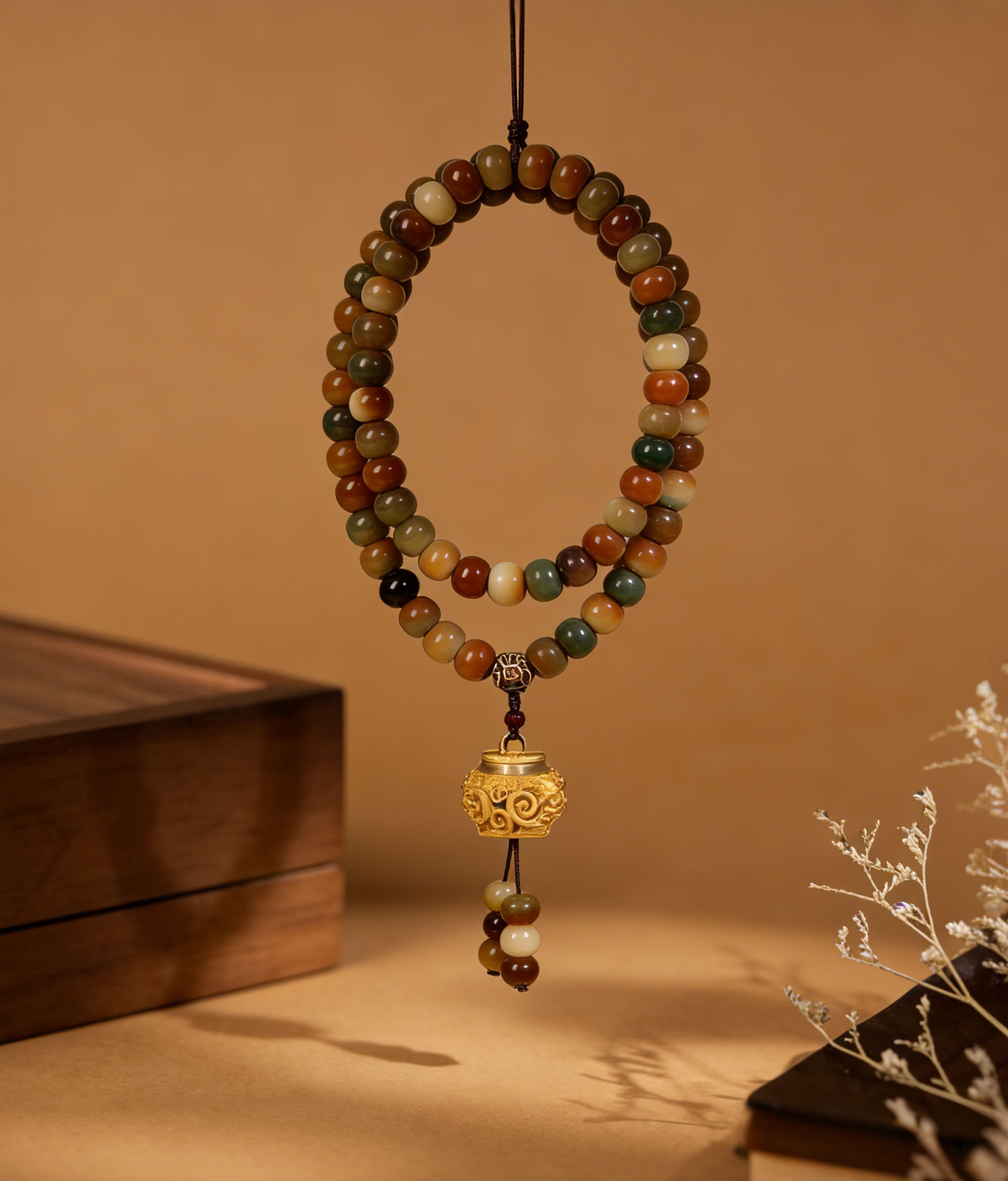 Protective 108-Bead Bodhi Mala Bracelet – Dunhuang Feitian-Inspired Amulet for Wearing or Holding